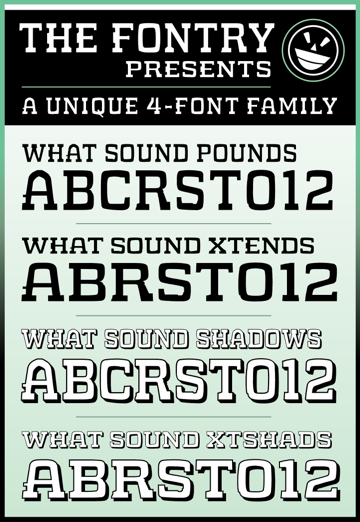 BUY NOW and instantly download the commercial version of FTY WHAT SOUND POUNDS, with complete keyable and non-keyable character ranges, foreign characters, OpenType replacement options and multi-language support. OTF and TTF format. ZIP download. Mac and Win supported. Secure PayPal checkout and PayLoadz download with email notification. Not a PayPal customer? PayPal accepts credit cards and so do we. Just give us a call. Or email. You can even request a PayPal Invoice.